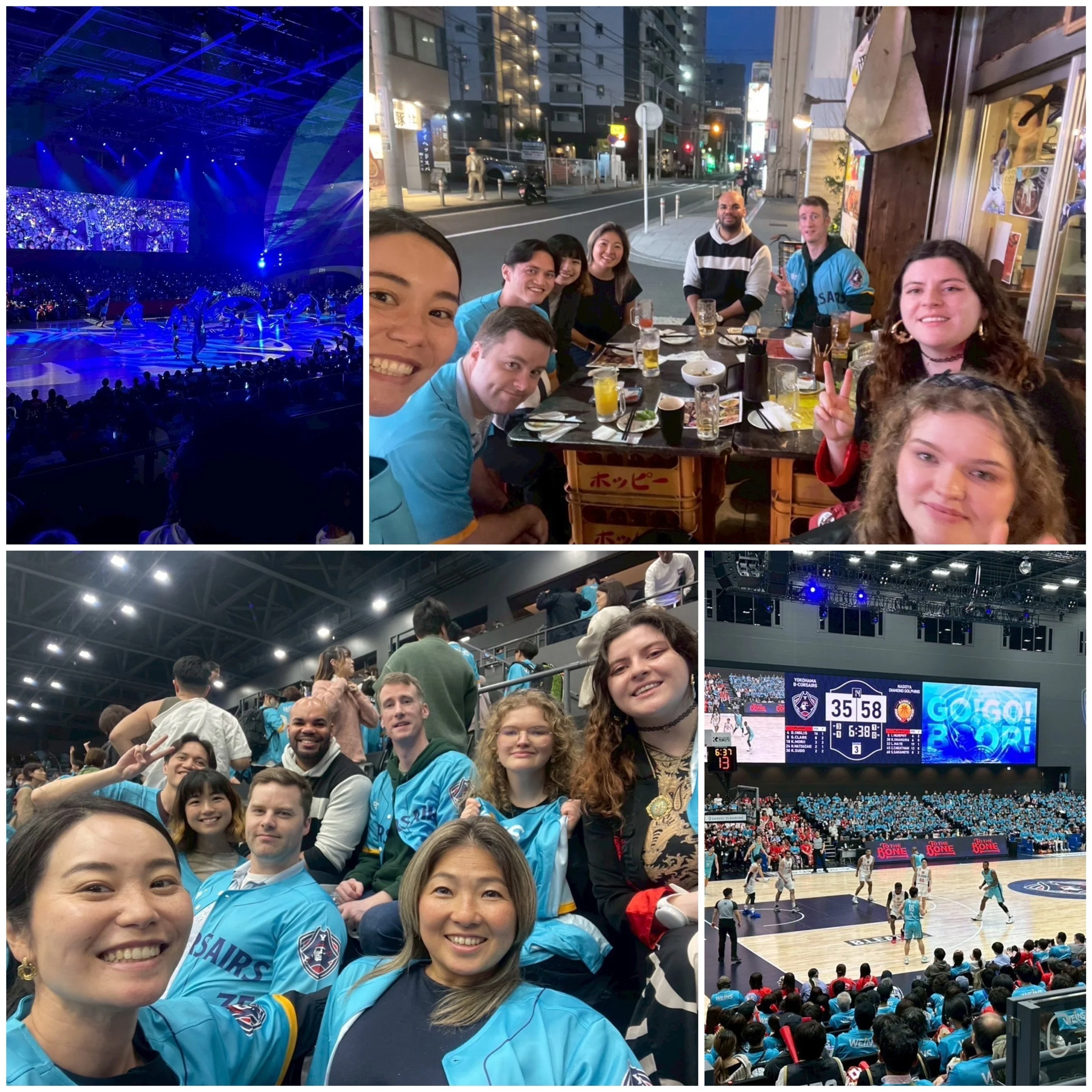 Another Japan GAA social event in April was to watch Japanease pro basketball. Yokohama Bee Corsairs vs. Nagoya Diamond Dolphins match! Thanks a million to the public relations representative from the Yokohama Bee Corsairs who led us to the game! We were thrilled to see professional basketball players in action!
